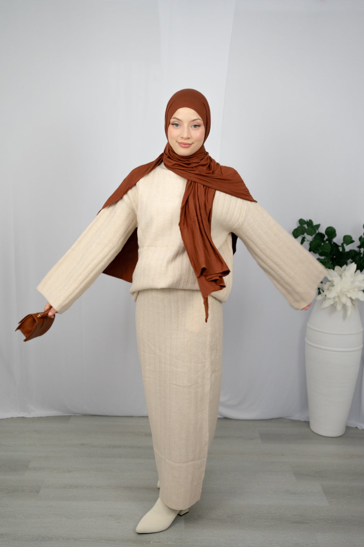 • Unser stylisches Rockset ist die Perfekte Kombination aus Komfort und Eleganz.Es besteht aus einem Oberteil mit praktischem Vollkragen und einem Rock mit elastischem Bund, der für eine bequeme Passform sorgt.